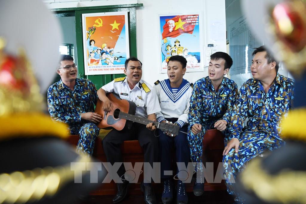 Các chiến sĩ cất cao tiếng hát ca ngợi đất nước, mừng Đảng, mừng Xuân mới. Ảnh: Minh Đức - TTXVN