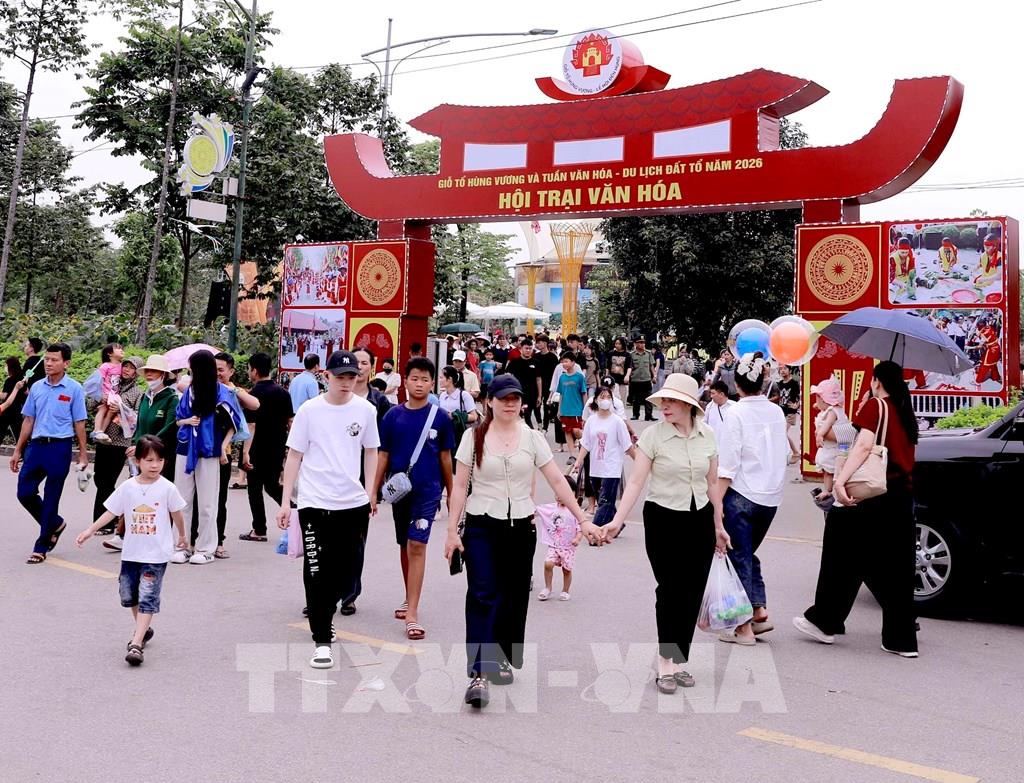 Thông tin từ Sở Văn hóa, Thể thao và Du lịch tỉnh Phú Thọ, trong khuôn khổ Giỗ Tổ Hùng Vương và Tuần Văn hóa - Du lịch Đất Tổ năm 2026 đã diễn ra nhiều hoạt động quy mô, đặc sắc, tạo sức lan tỏa rộng khắp từ Khu di tích lịch sử Đền Hùng đến các địa bàn như phường Việt Trì, Vân Phú, Nông Trang, Thanh Miếu… Dịp này, địa phương đón khoảng 6,5 triệu lượt khách, tăng khoảng 12% so với năm 2025.