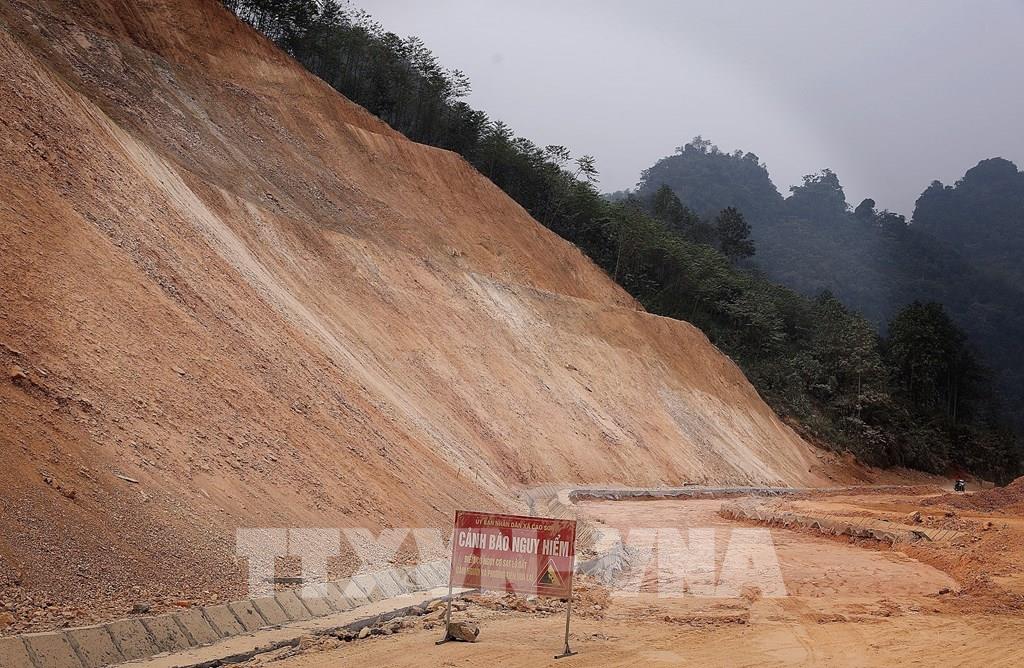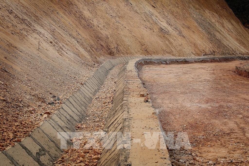 Các đường dẫn nước tại điểm sạt lở Km24+800 trên tuyến Tỉnh lộ 433 đã được hoàn tất. Ảnh: Thanh Hải - TTXVN