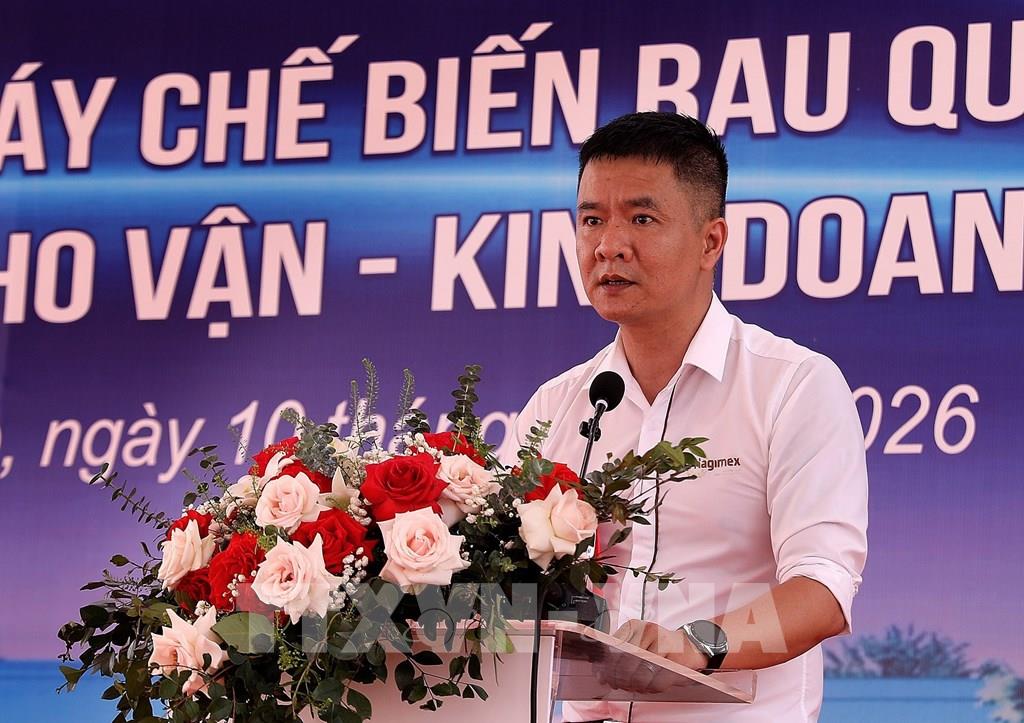 Ông Lê Tuấn Hùng, Giám đốc Công ty Cổ phần vật liệu xây dựng Tây Đô Hà Nội, phát biểu tại lễ khởi công. Ảnh: Thanh Hải - TTXVN