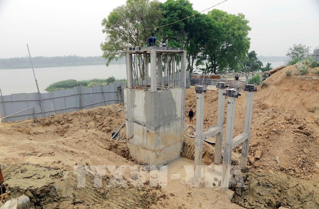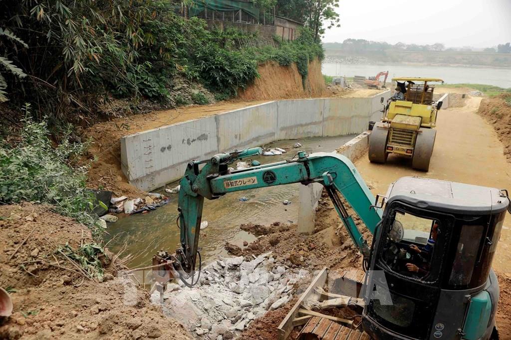 Dự án cải tạo, nâng cấp cống Đọ đê tả Sông Lô, xã Sông Lô đang được các đơn vị thi công đẩy nhanh tiến độ. Ảnh: Hoàng Hùng - TTXVN