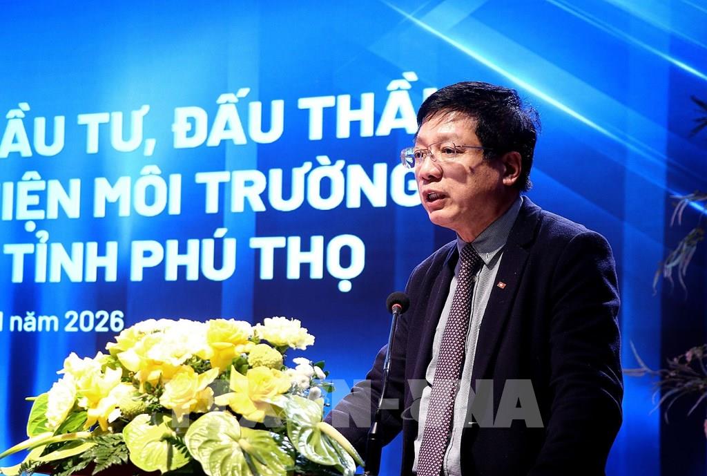 Đồng chí Trần Duy Đông Chủ tịch UBND tỉnh Phú Thọ phát biểu tại hội nghị. Ảnh: Thanh Hải - TTXVN