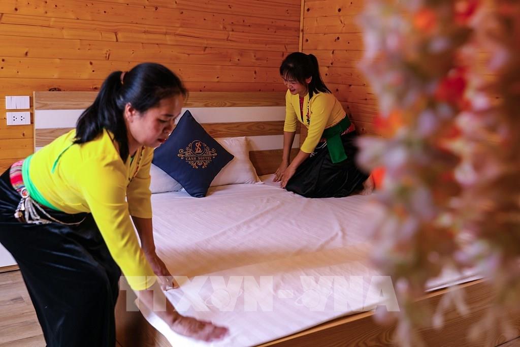 Các homestay tại xã Liên Sơn đã tạo việc làm cho lao động địa phương, góp phần gìn giữ và quảng bá những giá trị văn hóa dân tộc Mường đến với du khách. Ảnh: Trọng Đạt-TTXVN