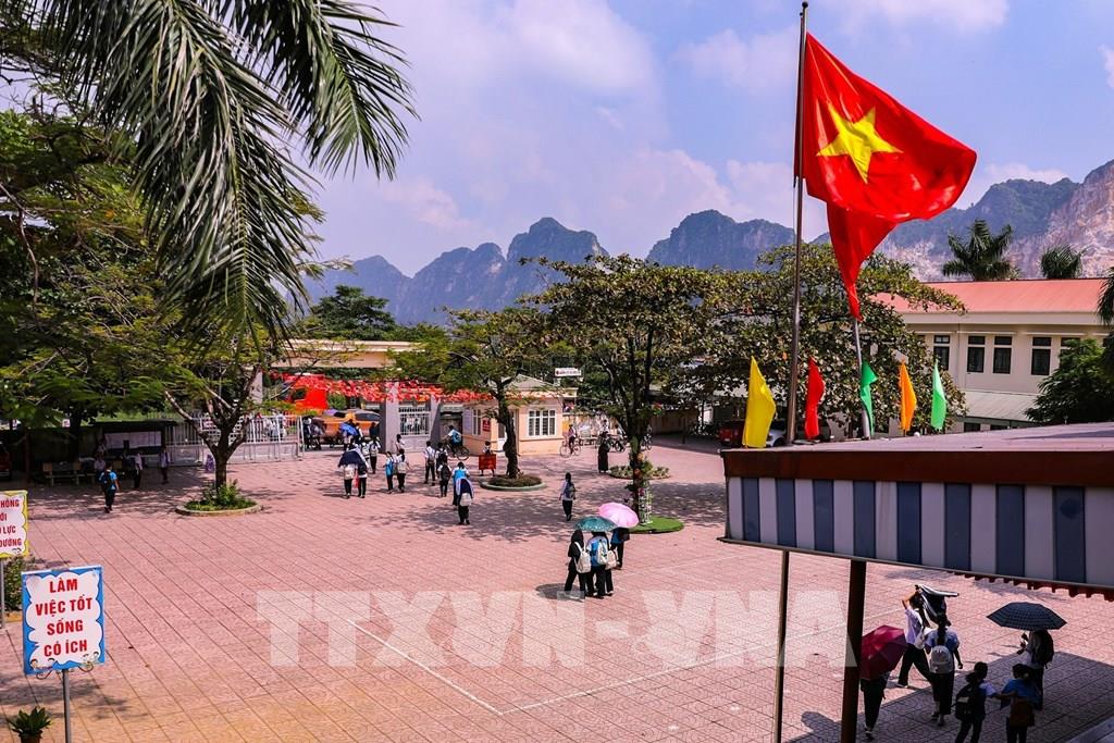 Niềm vui đến trường của học sinh trường Tiểu học và THCS Thành Lập xã Liên Sơn, tỉnh Phú Thọ. Ảnh: Trọng Đạt - TTXVN