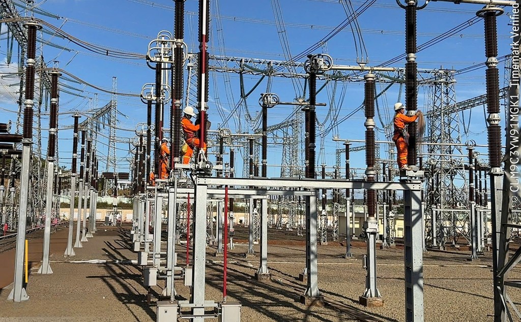 Nhân viên vệ sinh bảo dưỡng thiết bị tại TBA 500kV Pleiku 2. Ảnh: PTC3