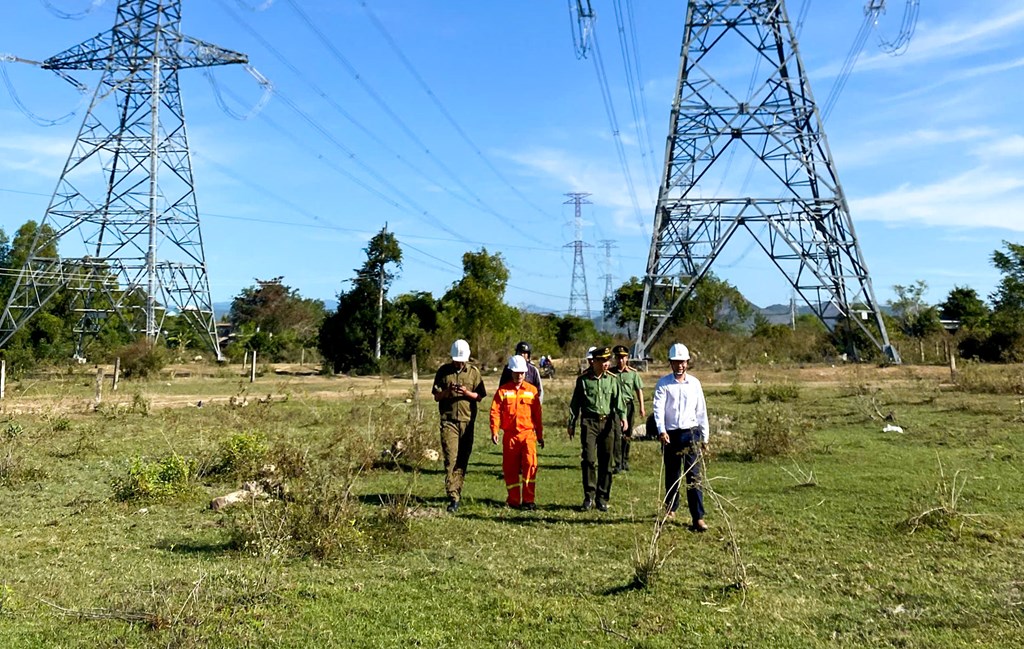 Phối hợp với phòng An ninh kinh tế (PA04) kiểm tra an ninh an toàn lưới điện. Ảnh: PTC3