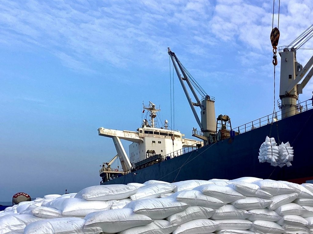 Bốc xếp phân bón lên tàu chở đi xuất khẩu của PVCFC. Ảnh: Petrovietnam
