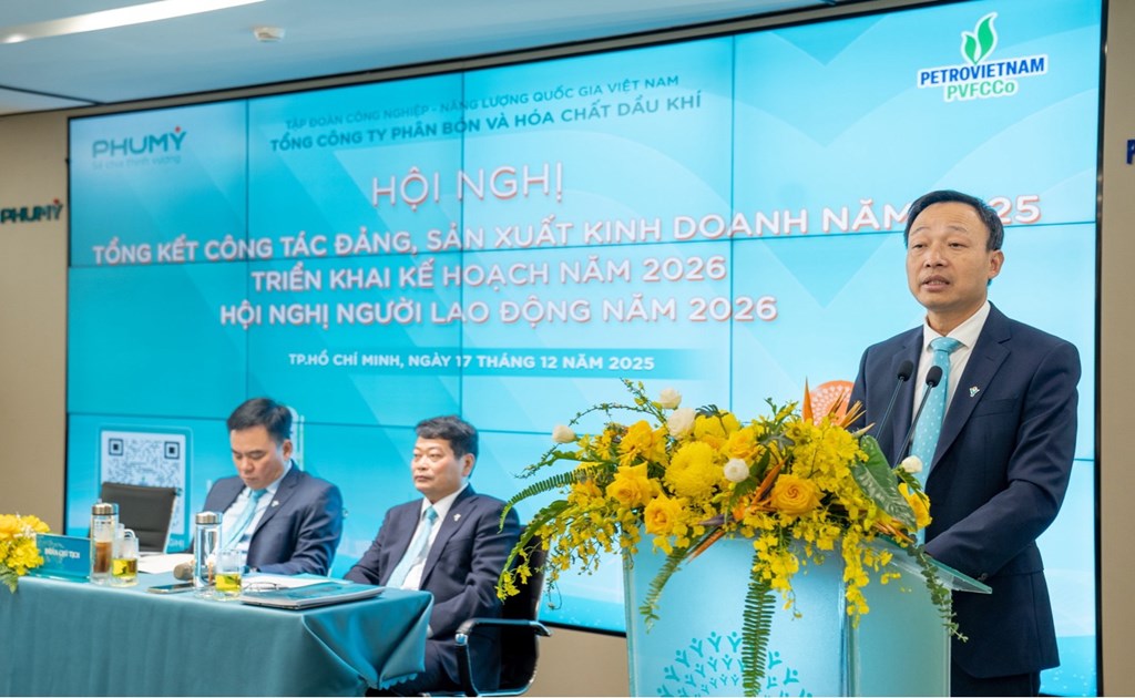 Đồng thời, PVFCCo-Phú Mỹ cần bảo đảm vận hành nhà máy an toàn, hiệu quả; phấn đấu rút ngắn thời gian dừng máy bảo dưỡng tổng thể nhằm nâng cao hiệu quả sản xuất; đẩy mạnh nghiên cứu, phát triển các sản phẩm mới theo xu hướng nông nghiệp xanh. Song song đó, tăng cường công tác M&A gắn với kinh doanh quốc tế để bảo đảm mục tiêu tăng trưởng năm 2026 và các giai đoạn tiếp theo; tiếp tục xây dựng, tái tạo văn hóa PVFCCo-Phú Mỹ trên nền tảng văn hóa Petrovietnam; đẩy mạnh đào tạo, phát triển nguồn nhân lực và bồi dưỡng nhân tài.Lãnh đạo Tập đoàn bày tỏ tin tưởng rằng tập thể cán bộ, đảng viên, người lao động Phú Mỹ sẽ tiếp tục phát huy tinh thần đoàn kết, chuyên nghiệp, với phương châm “một đội ngũ, một mục tiêu”, quyết tâm tổ chức triển khai thành công các kế hoạch, chỉ tiêu, nhiệm vụ được giao trong năm 2026, qua đó tiếp tục đóng góp tích cực vào sự phát triển bền vững của Petrovietnam.