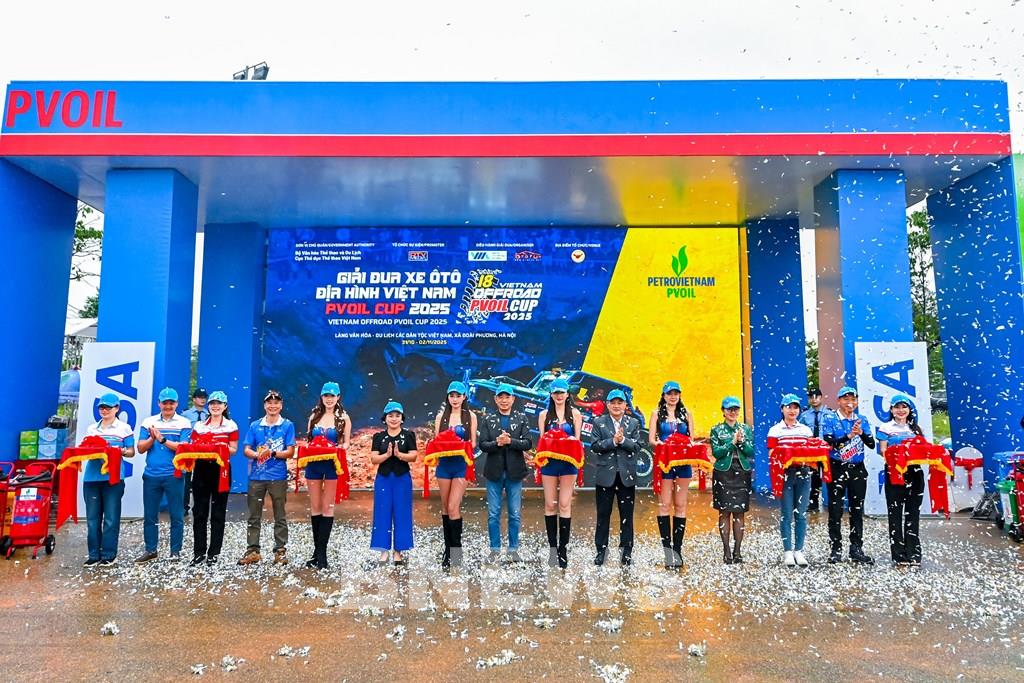 Các đại biểu thực hiện nghi thức khai mạc Giải Đua xe Ô tô Địa hình Việt Nam PVOIL Cup 2025 (PVOIL VOC 2025)