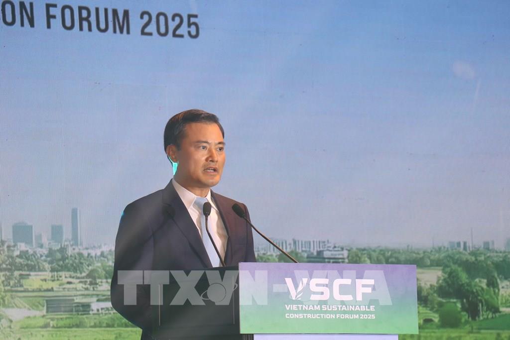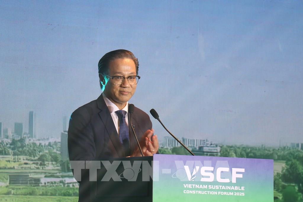 Phát biểu tại diễn đàn, Phó Chủ tịch Ủy ban nhân dân TP. Hồ Chí Minh Bùi Xuân Cường nhấn mạnh, quá trình chuyển đổi sang xây dựng bền vững hiện đối mặt nhiều thách thức. Đó là yêu cầu hoàn thiện hệ thống tiêu chuẩn, quy chuẩn kỹ thuật phù hợp với thông lệ quốc tế; là bài toán cân đối chi phí đầu tư ban đầu với lợi ích dài hạn của công trình xanh. Đó là năng lực đổi mới công nghệ, ứng dụng vật liệu mới, vật liệu tái chế, vật liệu ít phát thải; đồng thời, vấn đề quản lý rủi ro thiên tai, biến đổi khí hậu, đặc biệt là ngập lụt, sụt lún tại các đô thị lớn như Thành phố Hồ Chí Minh, cũng đòi hỏi các giải pháp tổng thể, liên ngành và dựa trên nền tảng khoa học. Báo cáo của Liên Hợp Quốc cho thấy, lĩnh vực xây dựng và vận hành công trình hiện chiếm khoảng 37% tổng lượng phát thải CO₂ liên quan đến năng lượng, đồng thời tiêu thụ hơn 30% tổng năng lượng và tài nguyên thiên nhiên của thế giới. Trong khi đó, quá trình đô thị hóa diễn ra nhanh chóng, dự báo đến năm 2050 khoảng 70% dân số thế giới sẽ sinh sống tại các đô thị, kéo theo nhu cầu rất lớn về hạ tầng và nhà ở. Điều này đòi hỏi ngành xây dựng phải tái định hình theo hướng xanh hơn, thông minh hơn và thích ứng tốt hơn với biến đổi khí hậu.Tại Việt Nam, ông Cường cho biết ngành xây dựng hiện đóng góp khoảng 6–7% GDP cả nước và hiện tác động lan tỏa lớn đến nhiều lĩnh vực khác. Riêng TP. Hồ Chí Minh, với vai trò là đô thị đặc biệt, trung tâm kinh tế – tài chính – đổi mới sáng tạo của cả nước, chiếm khoảng 20–22% GDP và đang chịu áp lực rất lớn về hạ tầng, mật độ xây dựng, biến đổi khí hậu. Vì vậy, phát triển bền vững ngành xây dựng không chỉ là yêu cầu khách quan, mà còn là lựa chọn chiến lược nhằm nâng cao năng lực cạnh tranh và chất lượng sống của người dân Thành phố.