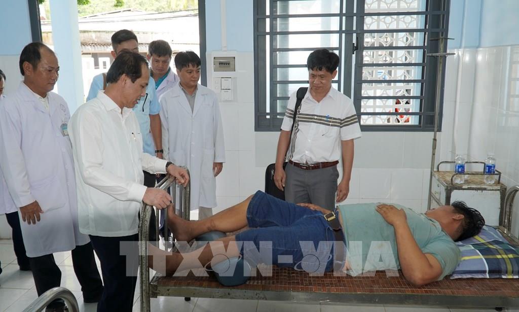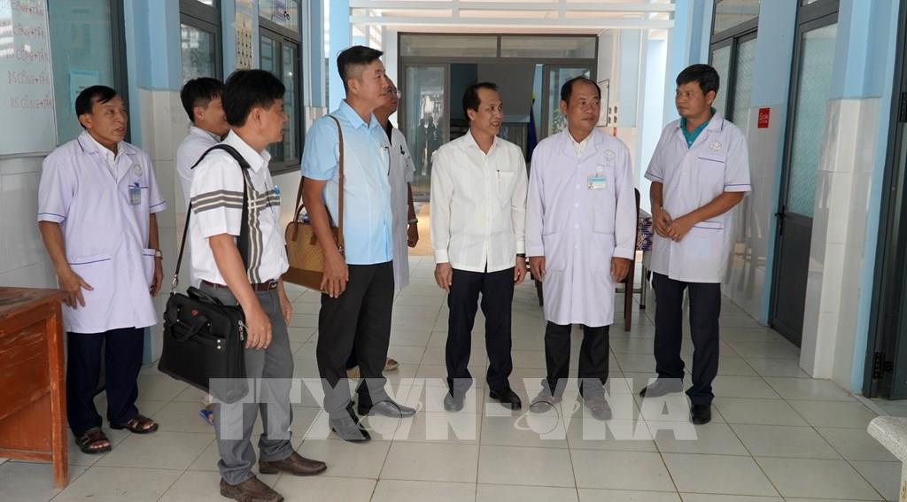 Lãnh đạo Sở Y tế An Giang thăm hỏi bệnh nhân tại Trạm Y tế Thổ Châu (đặc khu Thổ Châu, An Giang). Ảnh: Văn Sĩ - TTXVN