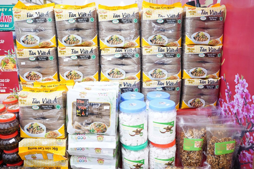 Theo chị Đào Thị Thùy Linh, đại diện Hợp tác xã Tân Việt Á (Cao Bằng): Tham gia Hội chợ Mùa Xuân năm 2026, HTX mang tới nhiều sản phẩm nông sản đặc trưng của địa phương như: miến dong, mộc nhĩ, nấm hương, thạch đen, bánh khảo đều là những đặc sản quen thuộc của Cao Bằng, phù hợp với nhu cầu tiêu dùng dịp Tết.