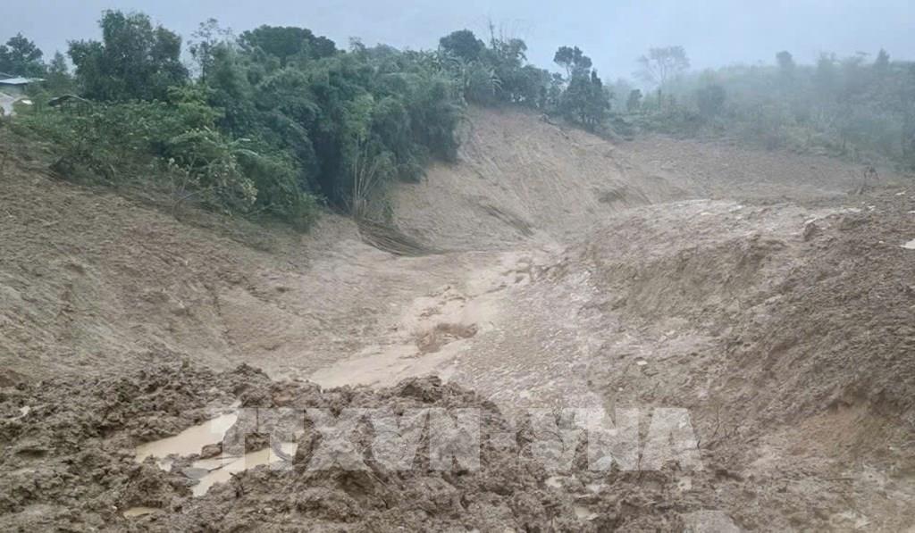 Lũ quét qua diện tích trồng hoa màu của người dân thôn Làng Mới, xã Ngọc Linh. Ảnh: TTXVN phát