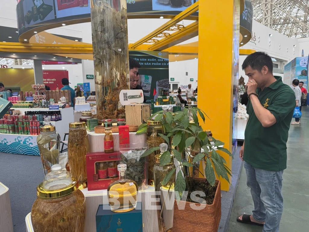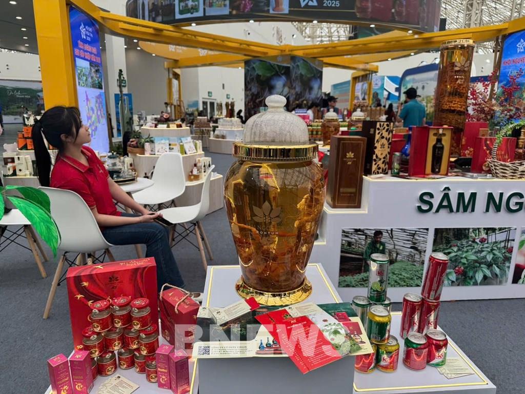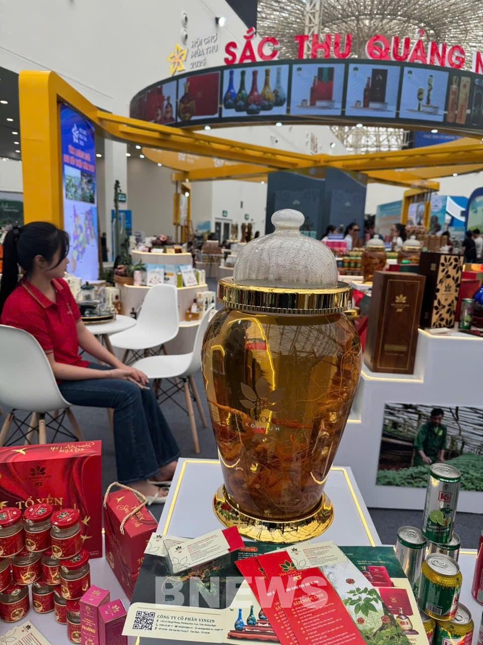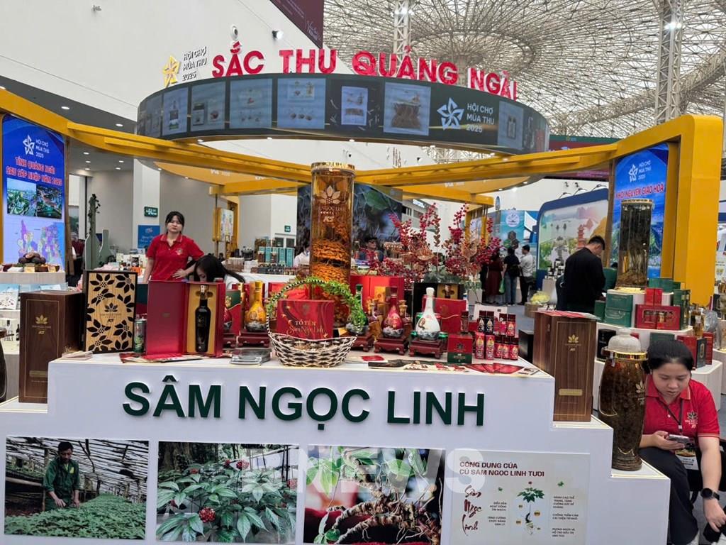 Khu trưng bày của Quảng Ngãi giới thiệu nhiều sản phẩm đặc trưng tiêu biểu của địa phương như sâm Ngọc Linh, tỏi Lý Sơn, cùng các sản phẩm OCOP đạt tiêu chuẩn 3–5 sao và hàng hóa chế biến từ nông sản, thủy sản truyền thống.