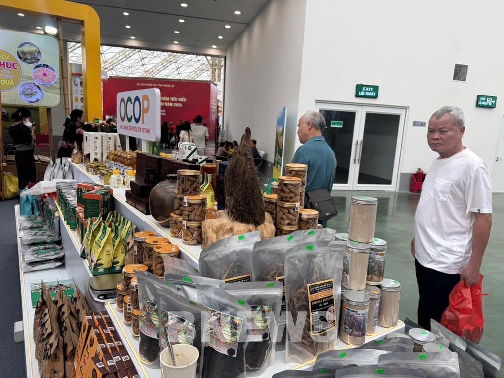 Tại các khu trưng bày, không khí giao thương diễn ra nhộn nhịp với sự góp mặt của hơn 300 gian hàng đến từ khắp các tỉnh, thành trong cả nước, đặc biệt là các sản phẩm OCOP, đặc sản vùng miền.