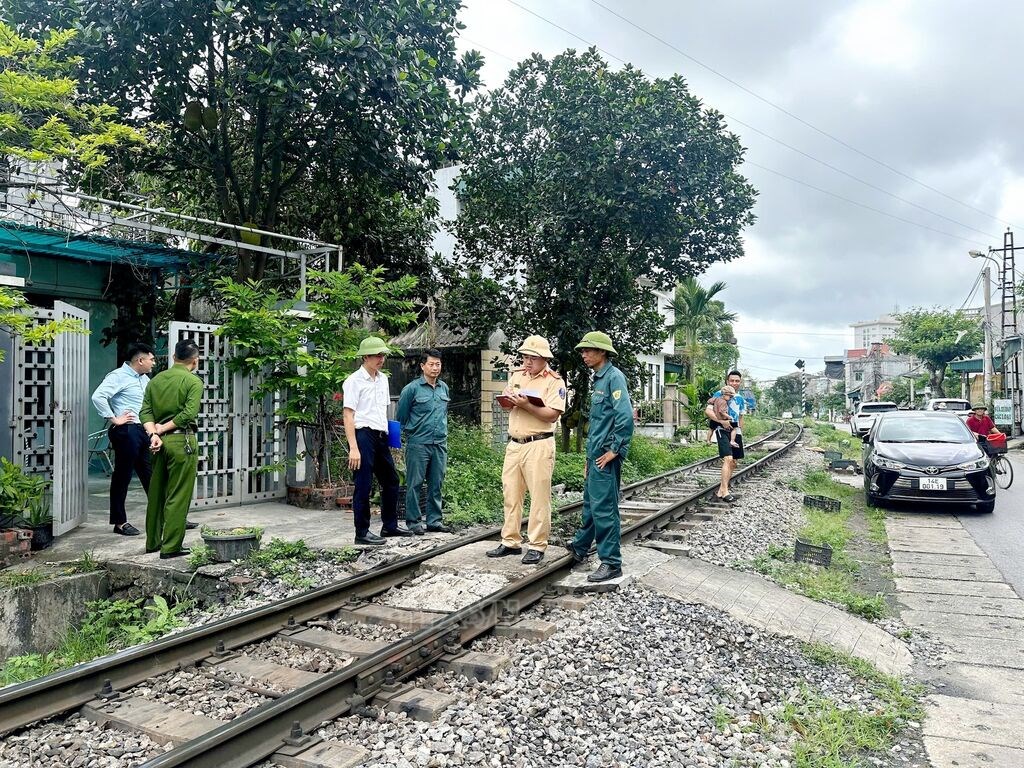 Lực lượng chức năng tại Quảng Ninh rà soát, xóa bỏ các điểm đi qua đường tàu tự phát. Ảnh: TTXVN phát