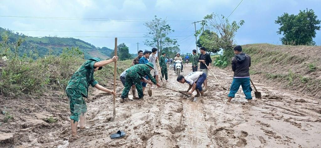 Ngay sau khi nước rút, các Đồn biên phòng trên tuyến biên giới đã triển khai lực lượng xuống địa bàn phối hợp với các lực lượng và chính quyền địa phương giúp dân khắc phục thiệt hại do mưa lũ.