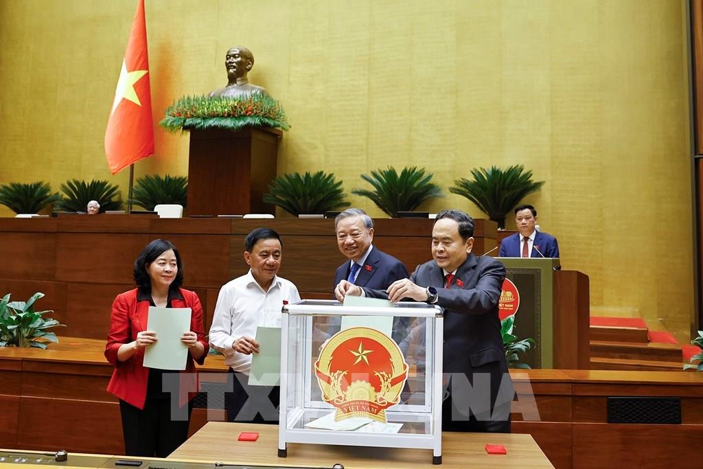 Tổng Bí thư Tô Lâm và đại biểu Quốc hội bỏ phiếu. Ảnh: Doãn Tấn - TTXVN