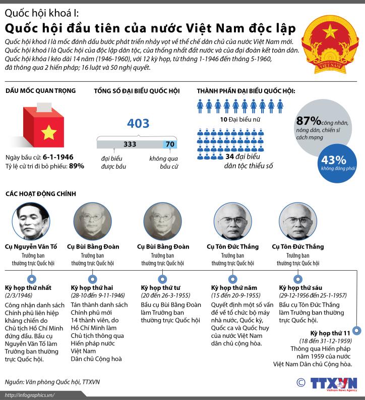 Quốc hội khoá I: Quốc hội đầu tiên của nước Việt Nam độc lập. Đồ họa: TTXVN