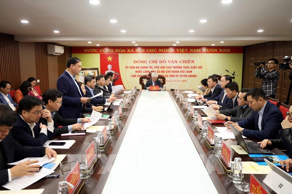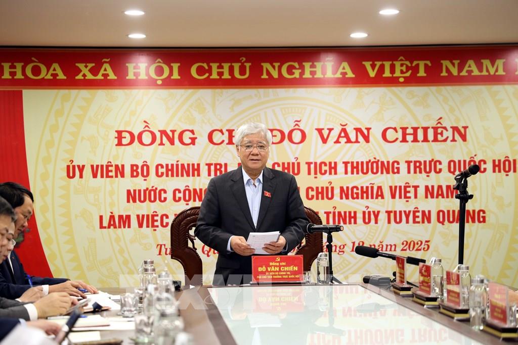 Tại buổi làm việc, Phó Chủ tịch Thường trực Quốc hội Đỗ Văn Chiến đánh giá cao nỗ lực của tỉnh Tuyên Quang trong công tác duy trì tăng trưởng, thúc đẩy phát triển kinh tế - xã hội, bảo tồn, phát huy giá trị văn hóa và kết quả thực hiện mô hình chính quyền địa phương 2 cấp trên địa bàn.