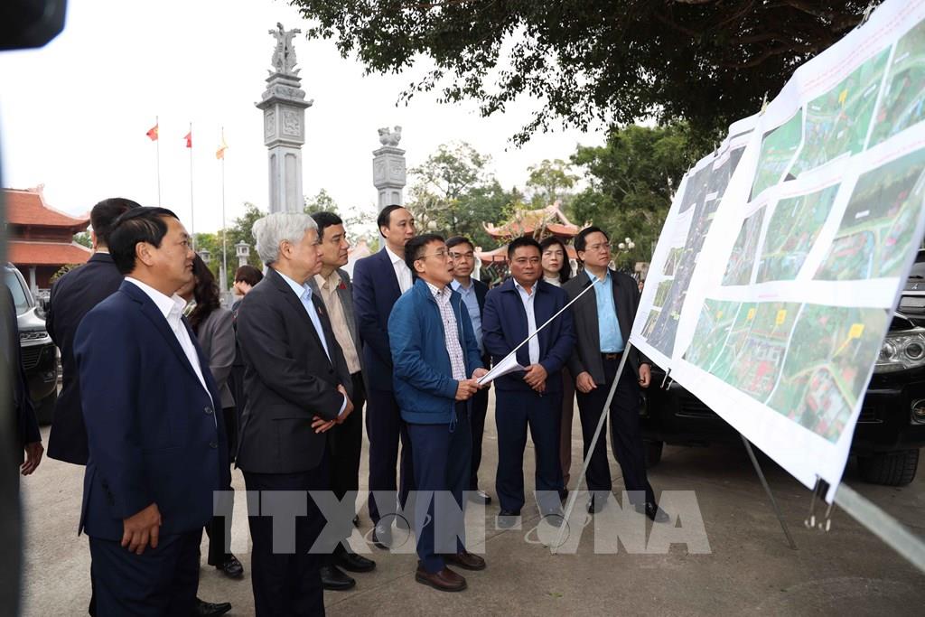 Phó Chủ tịch Thường trực Quốc hội Đỗ Văn Chiến và đoàn làm việc kiểm tra công tác tôn tạo, tu bổ Khu di tích Ban Thường trực Quốc hội tại xã Tân Trào. Ảnh: Hoàng Hải - TTXVN
