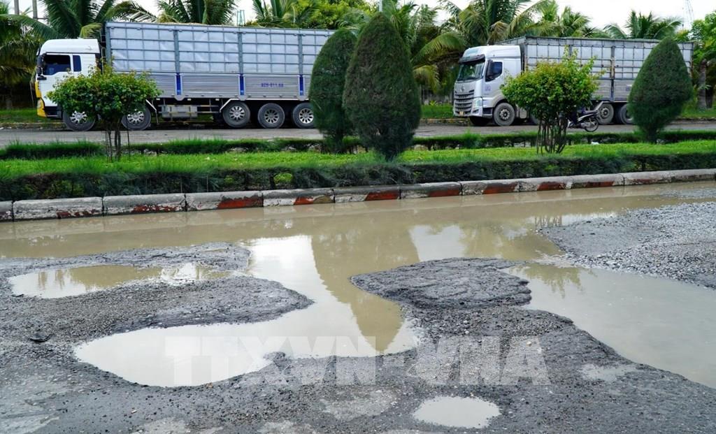 Sau trận mưa kéo dài, Quốc lộ 24C (khu vực trước Cảng quốc tế Gemadept) biến thành “sông”. Nước tràn lênh láng, đọng thành nhiều vũng lớn, nhỏ. Ổ gà, ổ voi chằng chịt, có vị trí sâu hơn 20 cm. Tình trạng hư hỏng ngày càng nặng khi tuyến đường phải “oằn mình” gánh chịu hàng trăm, thậm chí hàng nghìn lượt phương tiện trọng tải lớn lưu thông qua lại mỗi ngày.