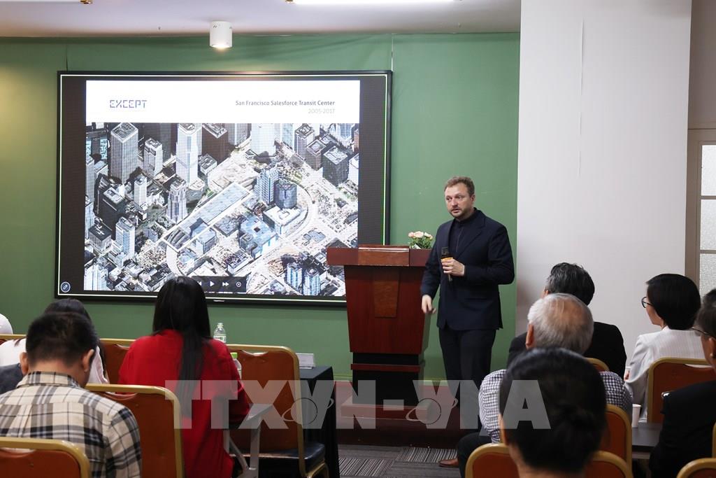 Luật sư Nguyễn Trung Nam, chuyên gia pháp lý năng lượng, trình bày tham luận. Ảnh: Hồng Đạt - TTXVN