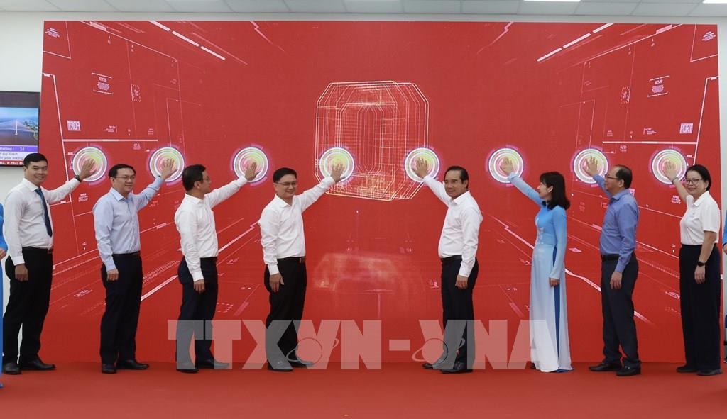 Lãnh đạo UBND Thành phố Hồ Chí Minh và các sở, ngành thực hiện nghi thức ra mắt Trung tâm Phục vụ hành chính công Thành phố Hồ Chí Minh. Ảnh: Xuân Anh - TTXVN