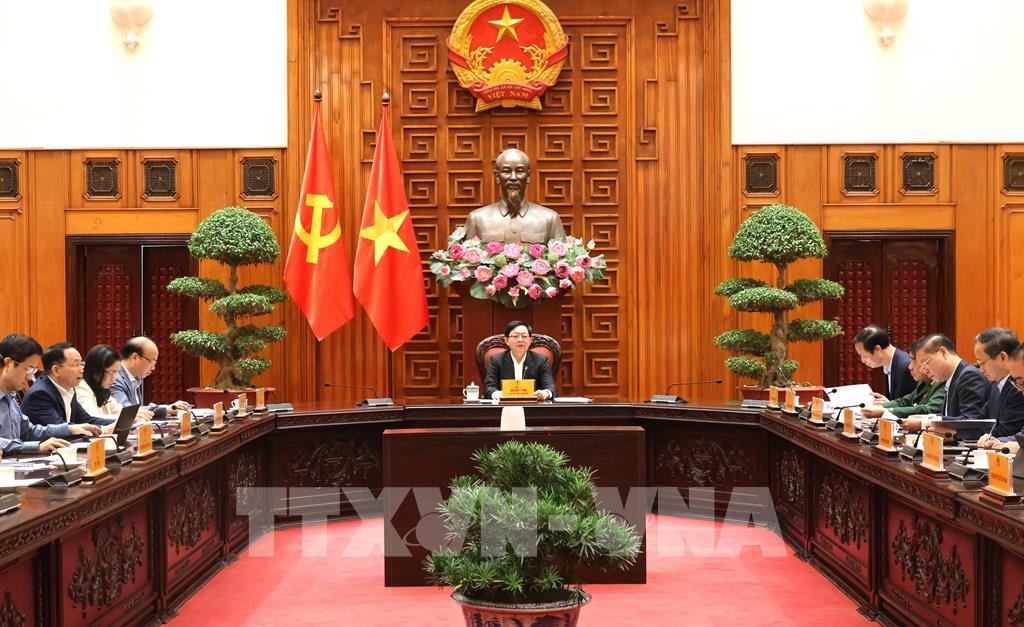 Phó Thủ tướng Hồ Quốc Dũng chủ trì cuộc họp với các bộ, ngành để cho ý kiến hoàn thiện về dự thảo Quyết định của Thủ tướng Chính phủ. Ảnh: Xuân Tùng-TTXVN