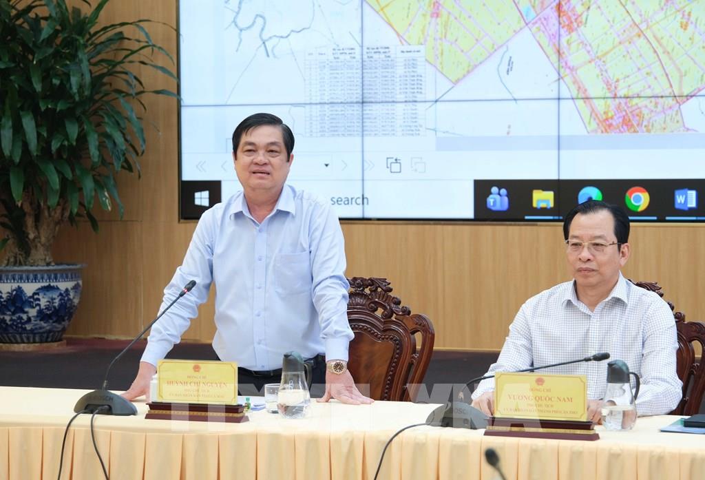 Phó Chủ tịch UBND tỉnh Cà Mau Huỳnh Chí Nguyện phát biểu tại buổi làm việc. Ảnh: Thanh Liêm - TTXVN
