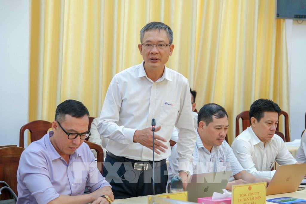 Ông Nguyễn Ngọc Tân, Phó Tổng Giám đốc Tổng Công ty Truyền tải điện quốc gia, thông tin về dự án đường dây 500 kV LNG Bạc Liêu - Thốt Nốt. Ảnh: Thanh Liêm - TTXVN
