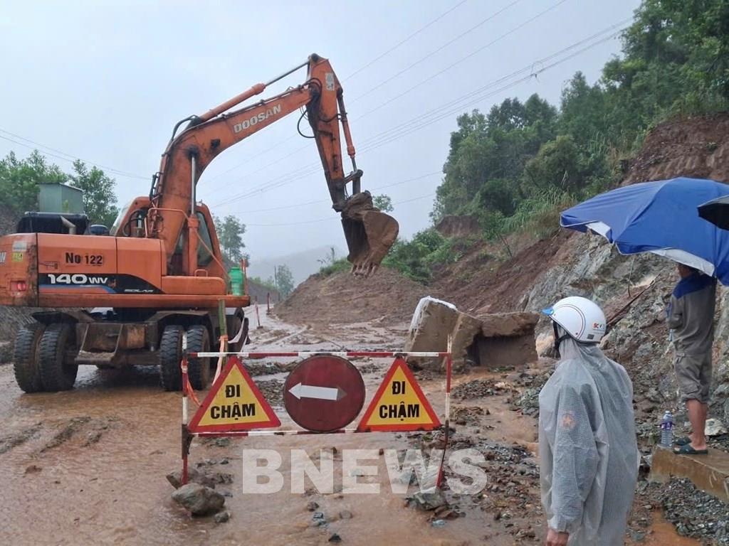 Tại Km65+500 QL14E xuất hiện sụt trượt khi địa bàn xuất hiện mưa trở lại. Ảnh: Diệp Anh/Bnews/Vnanet.vn