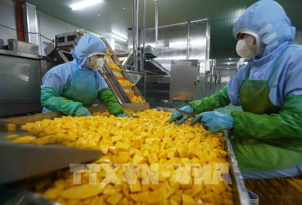 Dây chuyền chế biến sản phẩm xoài xuất khẩu sang thị trường Mỹ, châu Âu, Hàn Quốc, Nhật Bản ở nhà máy của Công ty CP Rau quả An Giang (tỉnh Lâm Đồng). Ảnh: Vũ Sinh - TTXVN