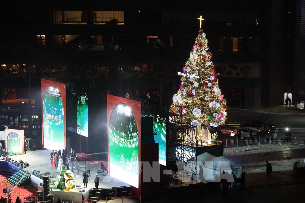 Cây thông lớn được thắp sáng tại Seoul, Hàn Quốc ngày 17/11/2025. Ảnh: Yonhap/TTXVN