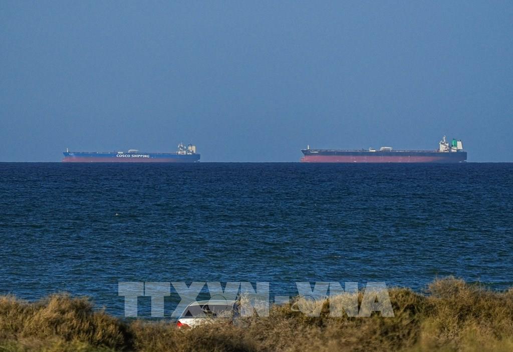 Tàu hàng chờ ở ngoài khơi Oman để di chuyển qua eo biển Hormuz, sau khi Mỹ-Iran đạt thỏa thuận ngừng bắn 2 tuần, ngày 8/4/2026. Ảnh: Anadolu Agency/TTXVN