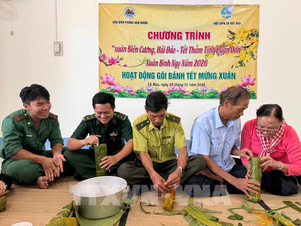 Thiếu tá Quách Thanh Tre, Phó Đồn trưởng Đồn Biên phòng Hòn Khoai cho biết, đặc thù của đơn vị là không có cư dân sinh sống thường xuyên, chỉ có các lực lượng vũ trang đứng chân. Với đội ngũ cán bộ, chiến sĩ đến từ cả ba miền Bắc - Trung - Nam, không khí Tết tại đồn luôn mang nét văn hóa đặc trưng, đa dạng và hài hòa. Qua đôi bàn tay khéo léo của người lính, những món ăn truyền thống từ chiếc bánh chưng xanh miền Bắc đến đòn bánh tét dẻo thơm miền Nam đều được chuẩn bị đầy đủ, tinh tế, mang lại cảm giác ấm cúng như đang ở chính quê nhà.