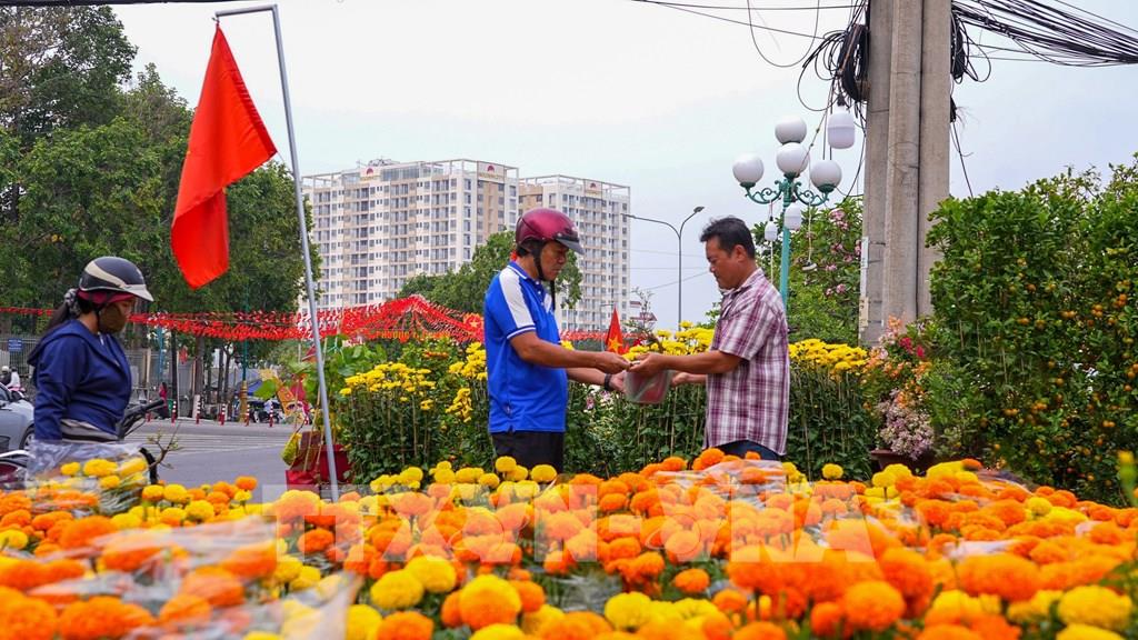 Theo anh Thiết, để có một cây mai nở rộ đúng dịp Tết là cả quá trình chăm sóc xuyên suốt từ tháng Ba âm lịch đến tận cuối tháng Chạp. Năm nay, thời tiết diễn biến phức tạp, đặc biệt trong tháng 11 âm lịch xuất hiện hai cơn mưa trái mùa khiến một số cây bung hoa sớm. Trước tình hình đó, anh chủ động sả nước, cắt nụ, điều chỉnh dinh dưỡng, tăng cường phân hữu cơ để nuôi lại bộ nụ chính, bảo đảm hoa nở đồng loạt vào những ngày cận Tết. Không chỉ bán mai, mỗi năm anh còn nhận chăm sóc hàng chục gốc mai cho người dân địa phương. “Khoảng từ 23 tháng Chạp, khi người dân đưa mai đến nhờ dưỡng lại sau lễ ông Táo, chúng tôi bắt đầu điều chỉnh để kịp trả cây đúng Tết. Ngoài khách truyền thống, năm nay lượng khách đặt hàng qua các kênh mạng xã hội như YouTube, Zalo, Facebook tăng mạnh. Giá mỗi cây mai tại vườn dao động từ vài chục triệu đến vài trăm triệu đồng, cá biệt có cây trị giá gần 1 tỷ đồng. Dù phân khúc cao cấp, song sức mua vẫn ổn định nhờ nhóm khách hàng chơi mai chuyên nghiệp, doanh nghiệp và những gia đình có điều kiện kinh tế khá giả.Bên cạnh mai vàng, hoa vạn thọ là loài hoa truyền thống không thể thiếu trong những ngày đầu xuân. Với ý nghĩa biểu trưng cho sự bình an, trường tồn và hạnh phúc, vạn thọ hiện diện trong nhiều không gian thờ cúng, trang trí gia đình.