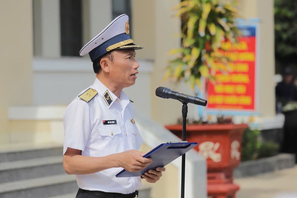Chuẩn Đô đốc Ngô Văn Thành - Chính ủy Vùng 5 Hải quân đọc Thư chúc Tết của Đảng ủy, Bộ Tư lệnh Vùng 5 Hải quân gửi cán bộ, chiến sỹ đảo Hòn Khoai.
