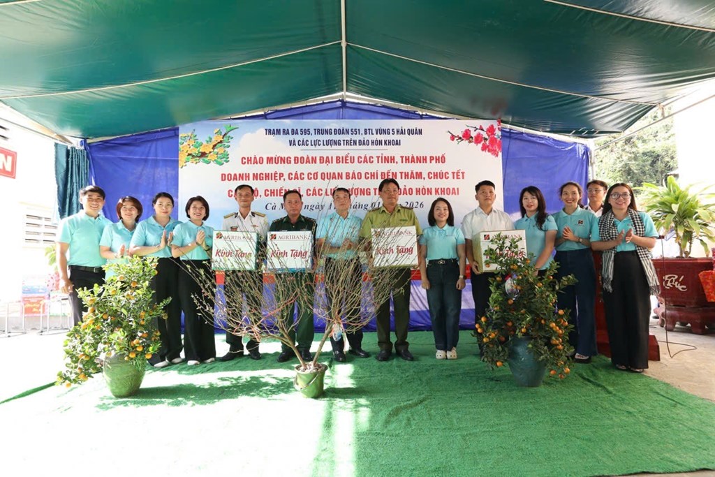 Đoàn công tác Agribank trao quà tặng các lực lượng trên đảo Hòn Khoai.