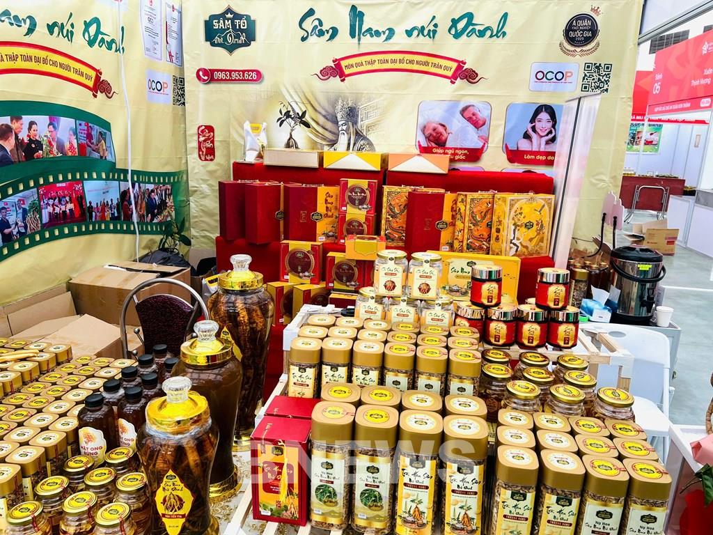 Các sản phẩm nổi bật của Sâm Tổ Núi Dành tại Hội chợ Mùa Xuân 2026. Ảnh: Văn Xuyên/BNEWS/TTXVN