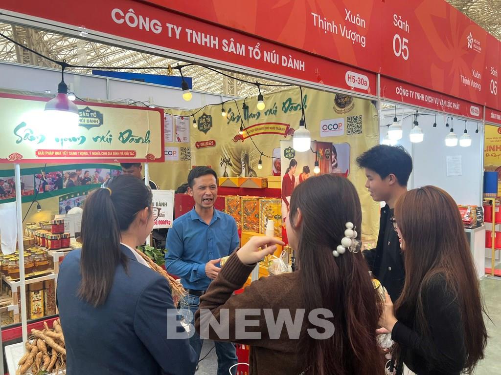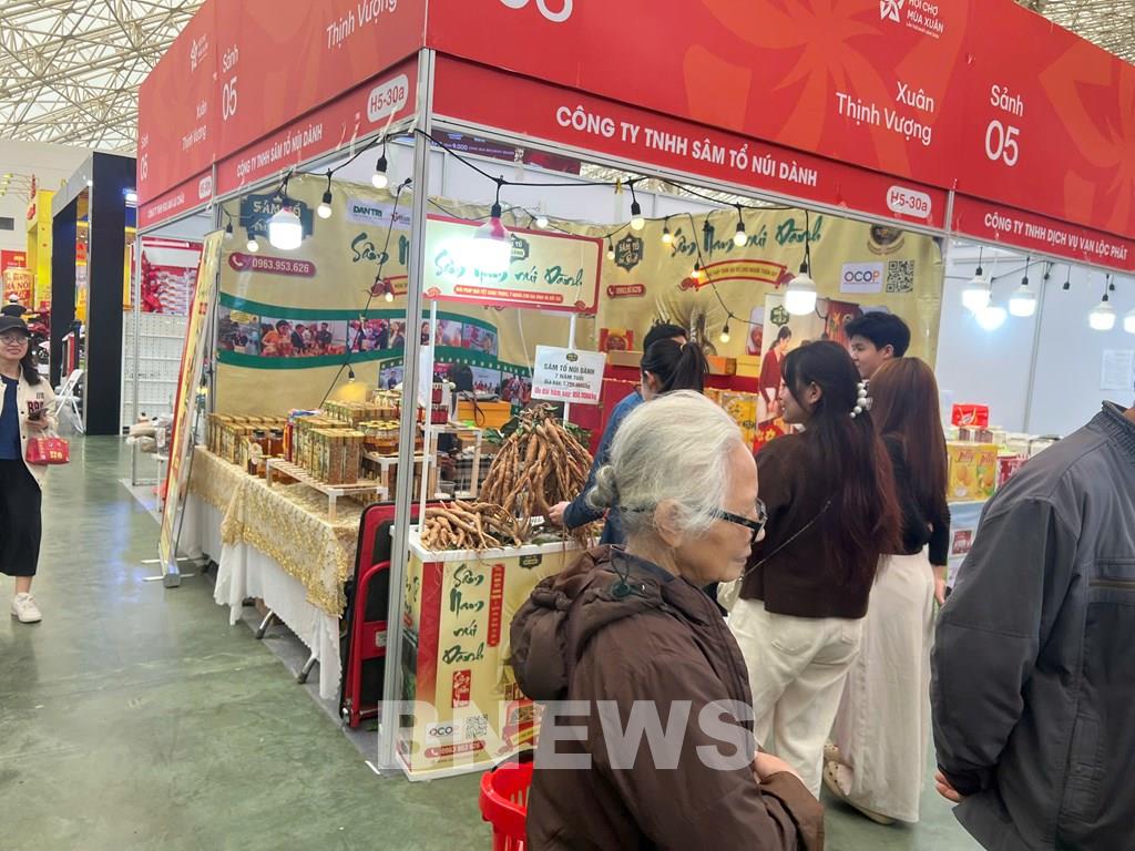 Sâm Tổ Núi Dành đưa sản phẩm được chuẩn hóa khoa học, bảo đảm chất lượng thật, giá trị thật tới Hội chợ Mùa Xuân 2026 giới thiệu đến người tiêu dùng và đối tác. Ảnh: Văn Xuyên/BNEWS/TTXVN