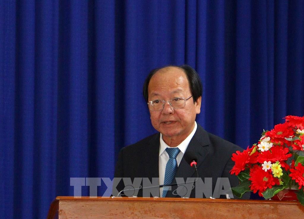 Chủ tịch Liên hiệp các Hội Khoa học và Kỹ thuật tỉnh Vĩnh Long Ngô Văn Tán phát biểu tại buổi lễ. Ảnh: Lê Thúy Hằng – TTXVN