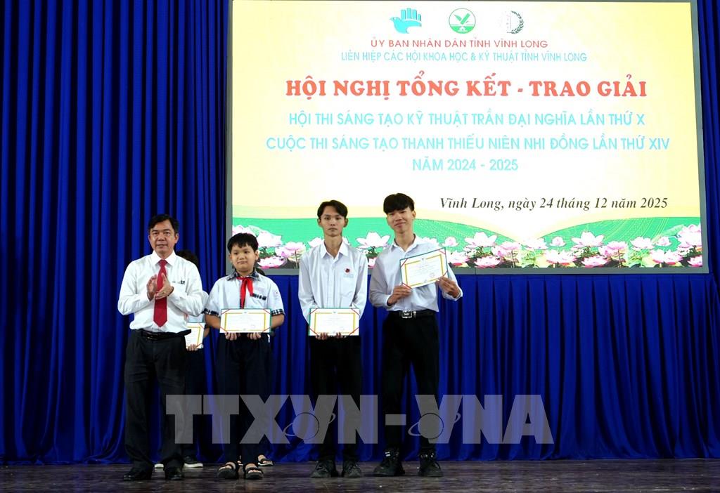 Ngày 24/12, Liên hiệp các Hội Khoa học và Kỹ thuật tỉnh Vĩnh Long phối hợp với Sở Giáo dục và Đào tạo tỉnh tổ chức Lễ tổng kết và trao giải cuộc thi Sáng tạo thanh thiếu niên, nhi đồng tỉnh Vĩnh Long lần thứ XIV và Hội thi Sáng tạo kỹ thuật Trần Đại Nghĩa lần thứ X, năm học 2024-2025.