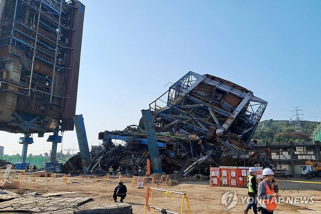 Sập tháp lò hơi ở nhà máy điện tại Hàn Quốc. Ảnh: Yonhap News