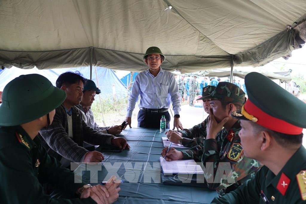 Phó Chủ tịch UBND thành phố Đà Nẵng Trần Nam Hưng họp Sở Chỉ huy hiện trường triển khai phương án tìm kiến nạn nhân nghi mất tích. Ảnh: Anh Dũng – TTXVN