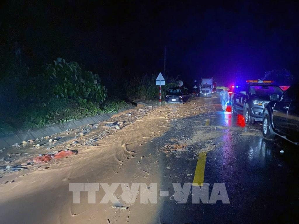 Phóng viên TTXVN có mặt tại hiện trường ghi nhận, dọc tuyến đường lên đèo Khánh Lê có hàng chục điểm sạt lở lớn, nhỏ. Cây cối ngã đổ, đất đá theo dòng nước chảy tràn ra đường. Các lực lượng và phương tiện tham gia cứu hộ, cứu nạn di chuyển rất khó khăn...