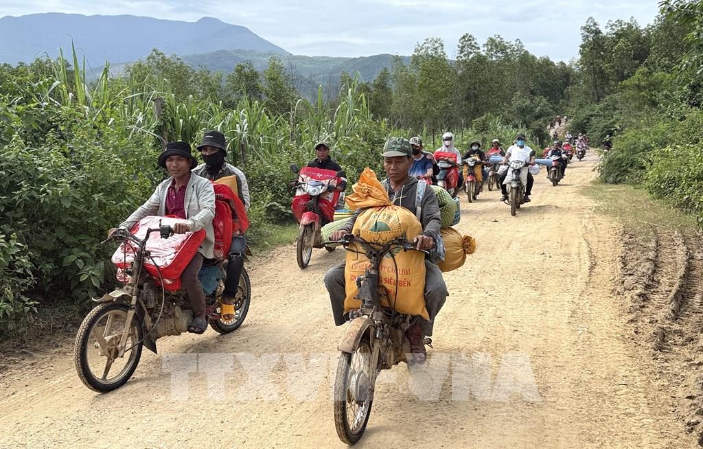 Người dân thôn Phú Hải (xã Phú Mỡ) chở hàng cứu trợ về nhà. Ảnh: Tường Quân - TTXVN