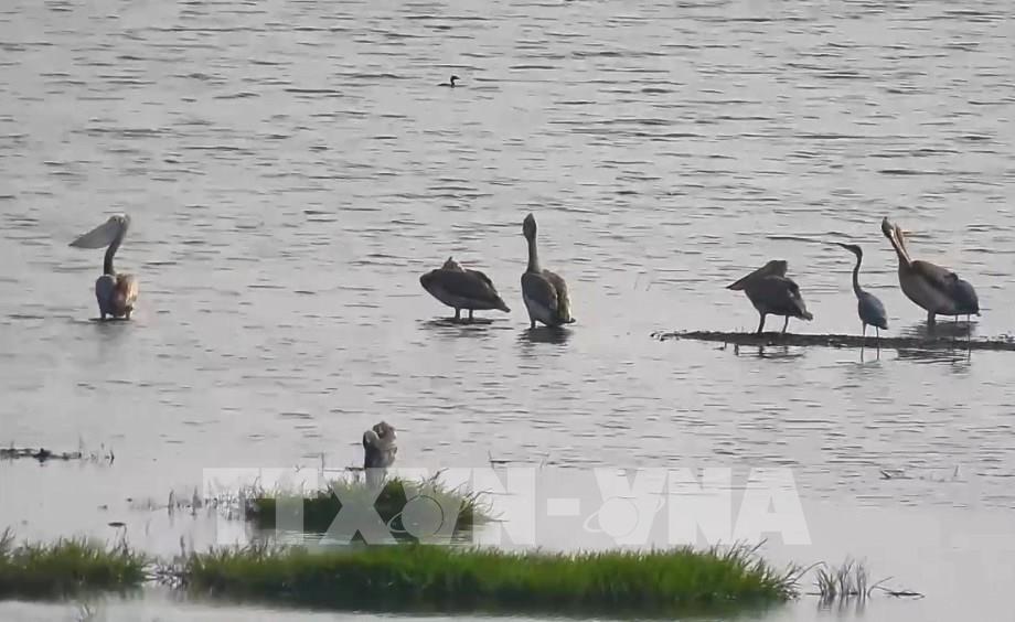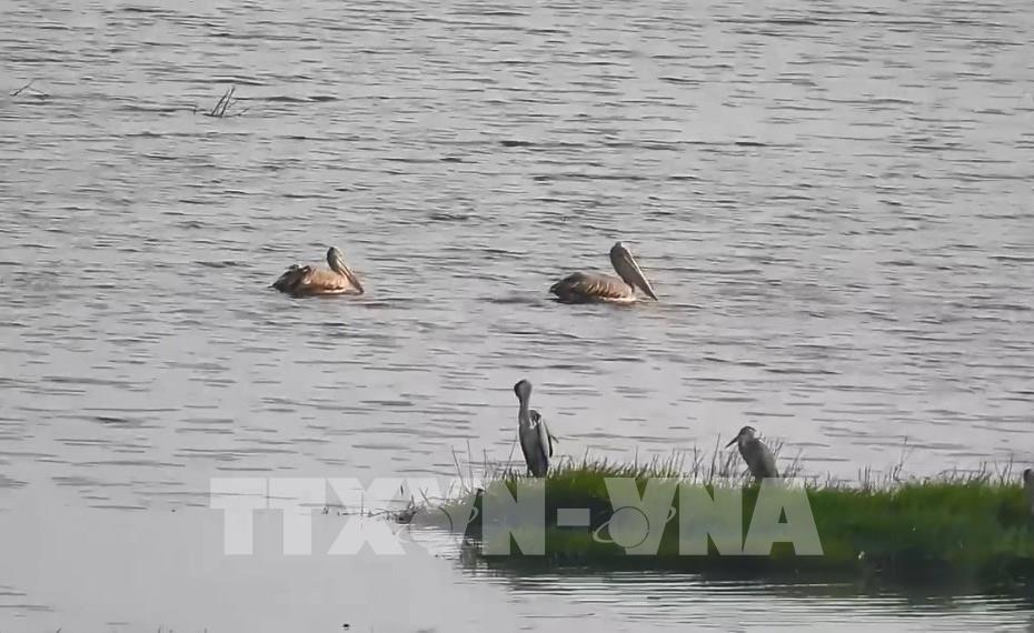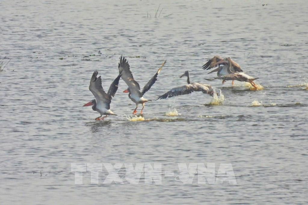 Chim bồ nông chân xám quý hiếm xuất hiện tại Vườn Quốc gia Tràm Chim sau 6 năm vắng bóng. Ảnh: TTXVN phát