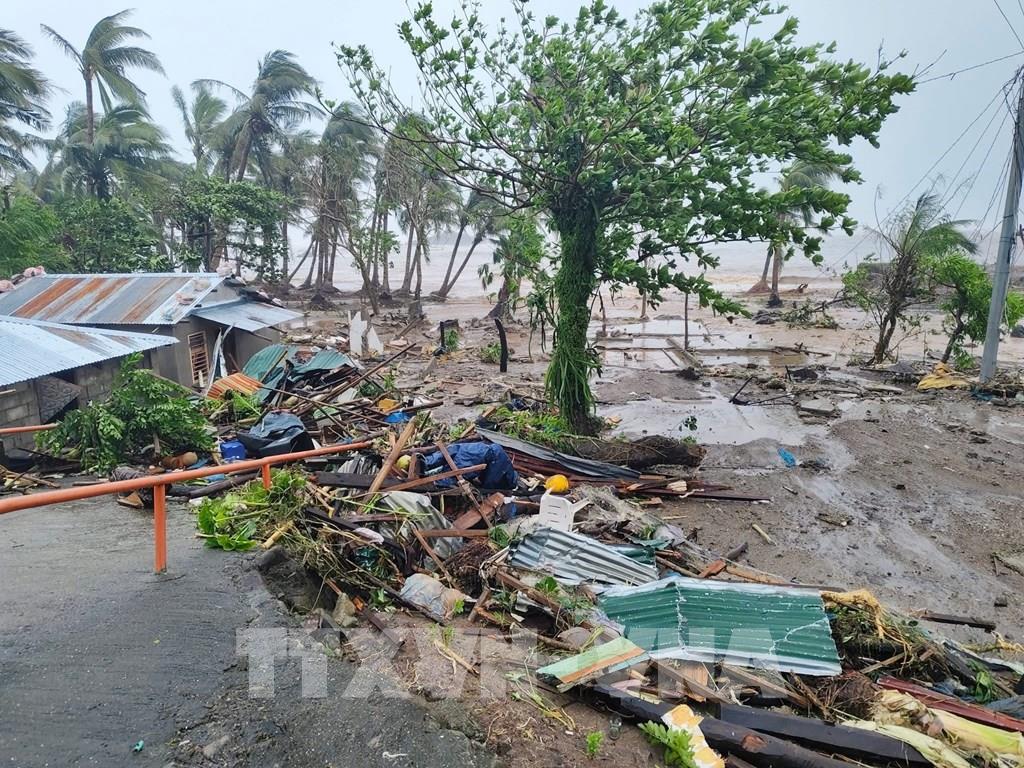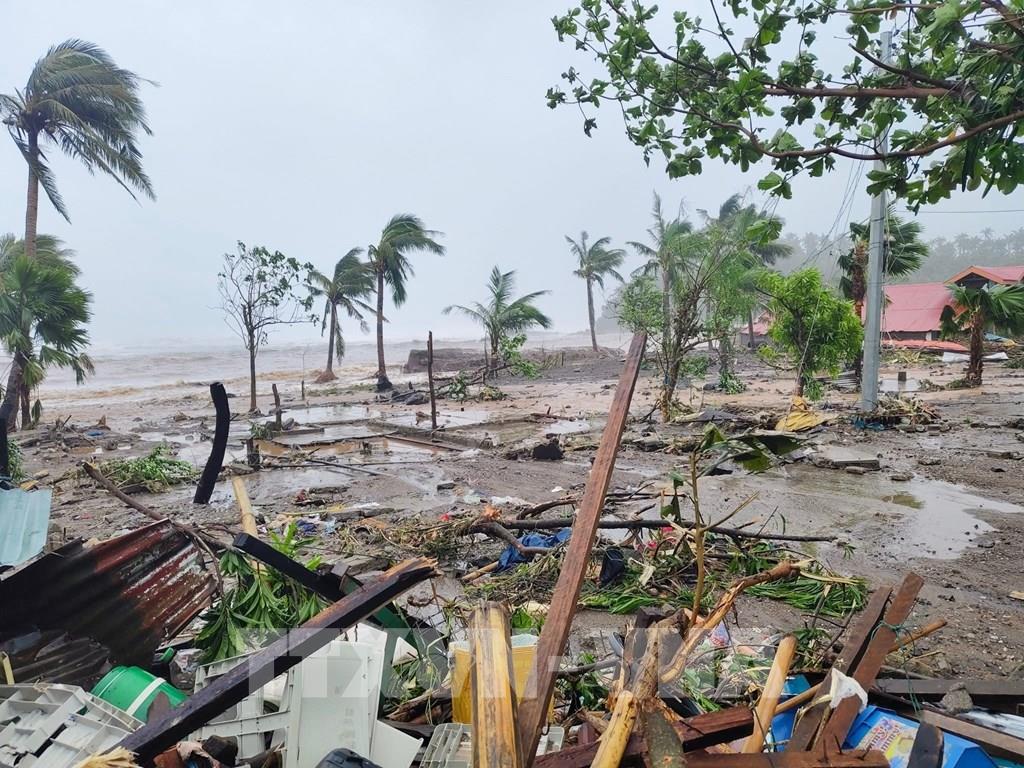 Khu vực chịu ảnh hưởng bởi siêu bão Fung-wong tại tỉnh Catanduanes, Philippines. Ảnh: THX/TTXVN
