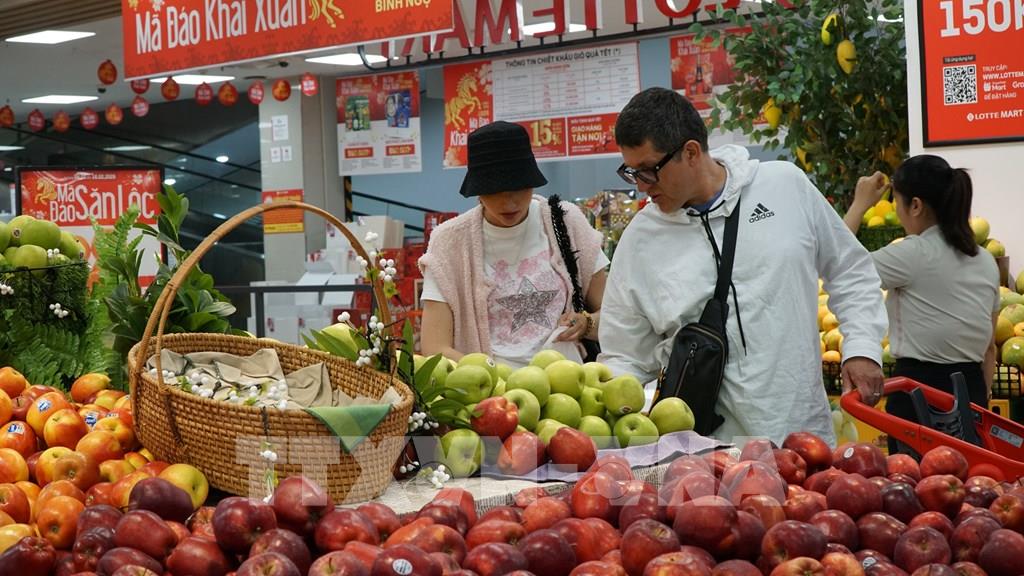 Du khách quốc tế mua hàng tại siêu thị Lotte Mart Đà Nẵng. Ảnh: Quốc Dũng - TTXVN